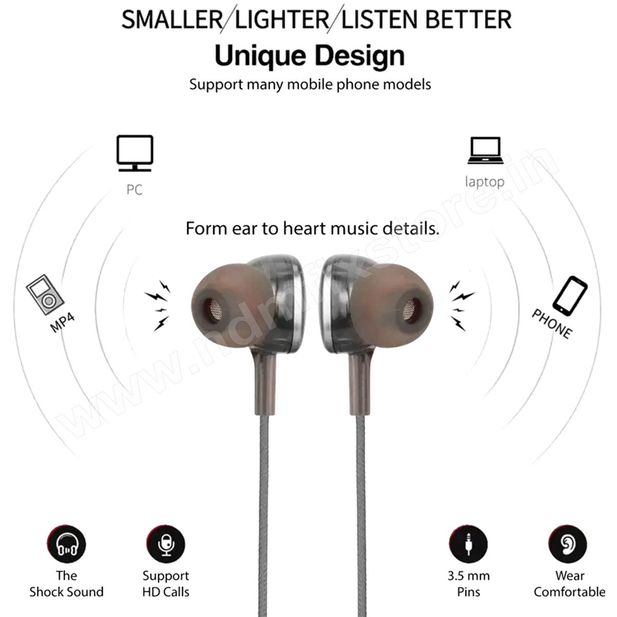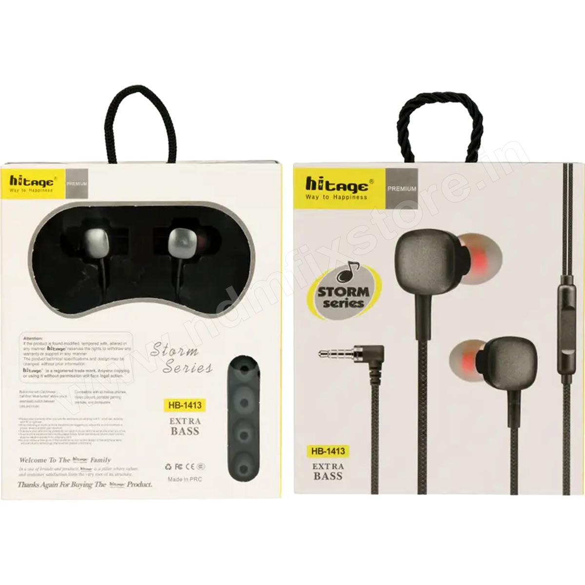 Hitage HB-1413 Earphones Storm Series comes with Powerful drivers for sonic clarity, bass-driven stereo sound and good attenuation of ambient noise Innovative housing design enables for wearing comfort with Made to fit you and your lifestyle, providing a smooth grip for an extra secure and comfortable fit for your ears Crafted with care, the polished metal ensures its longevity, the tangle-free cable is lightweight and features user-friendly controls for easy functioning. Passive noise cancellation feature enables users to enjoy listening to music even in a chaotic and noisy environment; it also enables users to receive calls on-the-go.