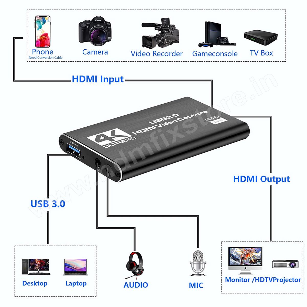 4K USB 3.0 HD Capture. HD streaming and recording with no latency.